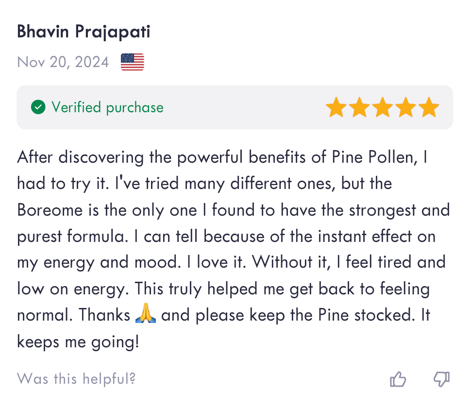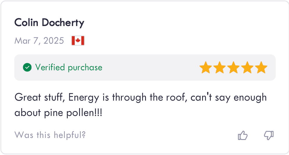 Canadian jack pine pollen extract, wild-harvested by our foraging team from pristine Quebec forests during nature's brief 12-day fertility window each spring. Unlike mass-produced supplements, we control every step from collection to bottling, using a specialized double extraction method to capture the full spectrum of steroid compounds and bioactive molecules.